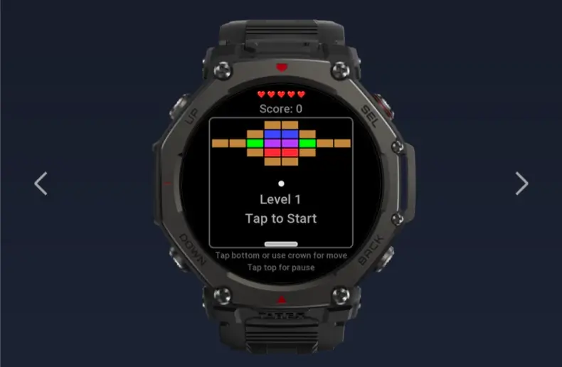 Block Breaker: A modern tribute to the classic arcade genre. It features 40 distinct levels and offers flexible control schemes, allowing players to use either the physical crown or on-screen buttons to navigate.