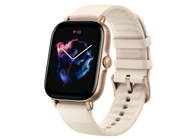 The Amazfit GTS3 watch body is made out of Aluminum alloy while the strap is available in silicone. Regarding the display screen! This Amazfit GTS 3 watch has a 1.75inch Large AMOLED touch screen curved with 2.5D glass and created with a resolution of 390*450 pixels. This wearable is also packed with various watch faces and is available in black, pink, and gold colors.