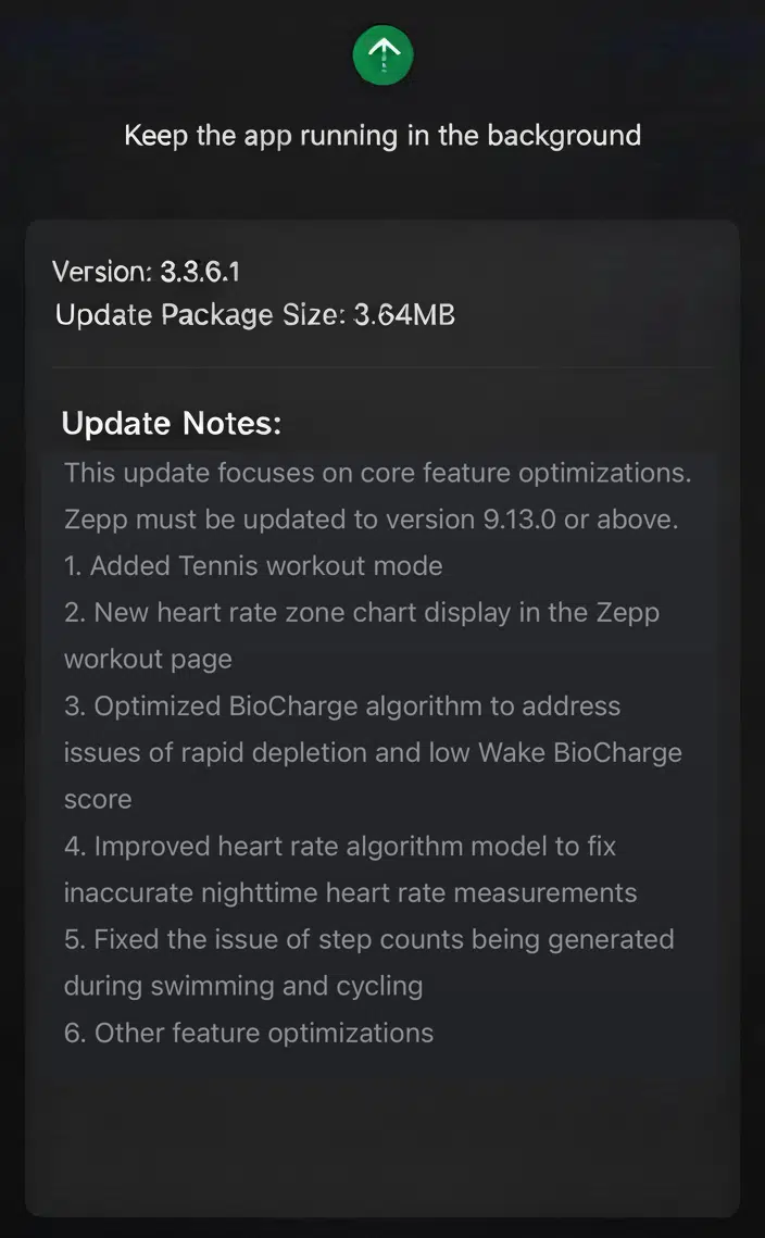 Rounding out the update are several important bug fixes designed to improve the overall accuracy and reliability of the device. These include resolving issues with nighttime heart rate measurements, correcting exaggerated calorie totals recorded during workouts, and eliminating step miscounts that previously occurred during swimming and cycling activities. The entire package is a lightweight 3.4MB update, but users must ensure they have the Zepp app version 9.13.0 installed to access and download the new features.