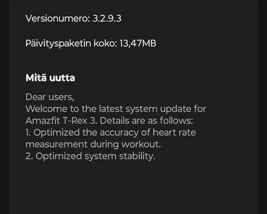 Amazfit, a leading global wearable brand, has announced the release of a new software update (version 3.2.9.3) for its rugged smartwatch, the T-Rex 3. This update focuses on enhancing the user experience and improving the overall performance of the device.