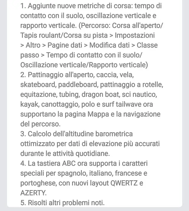 In addition to the running and navigation updates, the firmware includes several other key improvements. The barometric altitude calculation has been optimized to provide more accurate elevation data throughout your daily activities. Furthermore, the ABC keyboard now supports special characters for Spanish, Italian, French, and Portuguese. It also introduces new QWERTZ and AZERTY keyboard layouts to better accommodate users in different regions. The update also includes various bug fixes and performance improvements.