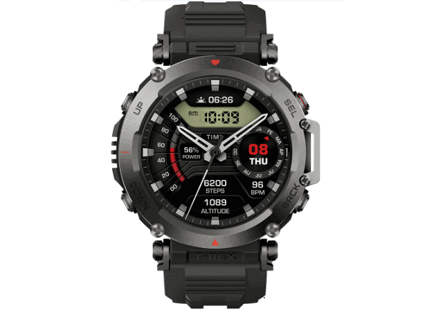 The Amazfit T-Rex Ultra body is made out of 316L Stainless steel while the strap is available in silicone. Regarding the display screen! This Amazfit T Rex Ultra smartwatch has a 1.39-inch Large AMOLED touch screen covered with sapphire glass and created with a resolution of 454 x 454 pixels. This fitness tracker is also packed with a variety of watch faces and is available in black and Sahara colors.