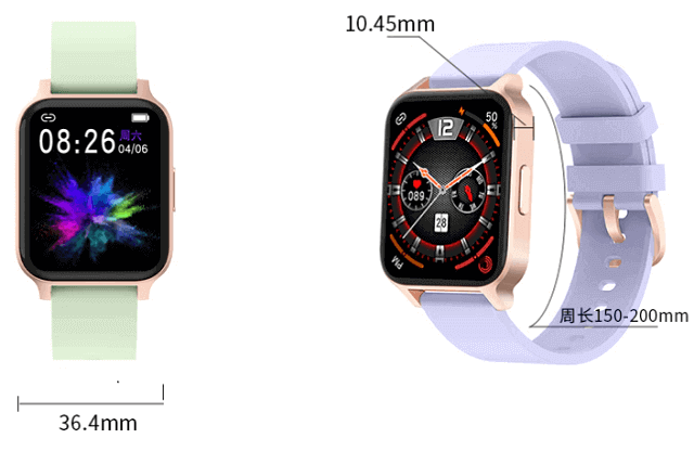 As you see in the picture above, This new H8 watch got a square shape that looks stylish, fashionable, and suitable for men and women. Measuring 44*36.4*10.45mm and weighing about 35g. There is one physical button on the right side of the case. It is responsible for the function of turning on the running back. The reverse side of the device received a typical configuration – there are magnetic contacts for charging and a heart rate sensor.