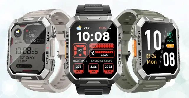 In addition to the features mentioned above, This Blackview W60 smartwatch has a speaker and microphone that allow you to make calls directly via the smartwatch. Additional Features are an SPO2 Blood oxygen monitor, Blood pressure monitor, 100 sports modes, Compass, Female health monitoring, Call and message reminder, Anti-lost, timer, stopwatch, Bluetooth…etc. This wearable has a 900mAh large battery capacity with 30 days of normal usage and 100 days of standby time.