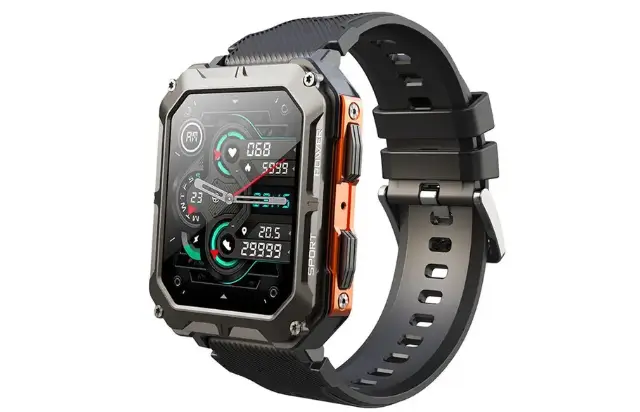 The Cubot C20 Pro smart watch body is made of zinc alloy while the strap is of silicone. Regarding the display screen! This C20Pro smart watch has a 1.83-inch Large IPS touchscreen curved with 2.5D glass and is created with a resolution of 240 x 286 pixels. The device is also packed with various watch faces and is available in black and orange colors.
