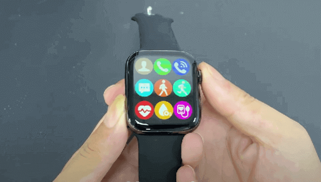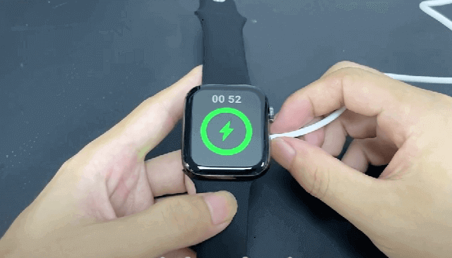 As you see in the picture above, this new CW17 Pro Max Watch comes in a square shape that looks stylish, fashionable, and very similar to the Apple watch series 7. Measuring 45*38*10.9mm and weighing about 50g. There are two physical buttons on the right side of the case. It is responsible for the function of turning on the running back. The reverse side of the device received a typical configuration – there are magnetic contacts for charging and a heart rate sensor.