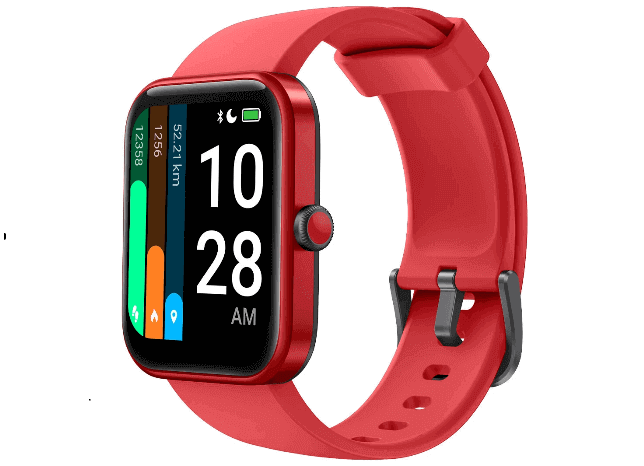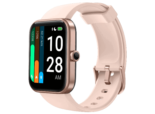 Pros: Stylish Design, Bluetooth 5.0, 14 Sports Modes, Customized watch faces, Suitable for swimming,Alexa Voice Assistant