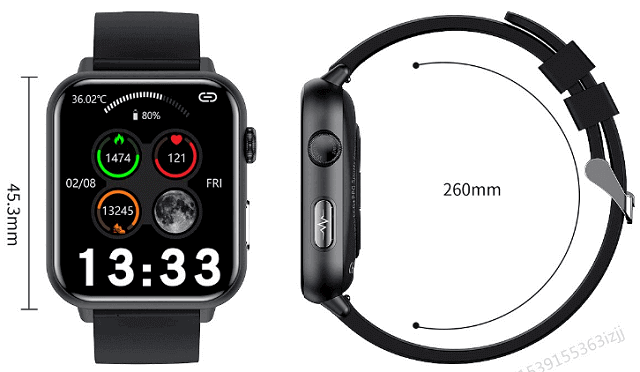 In addition to the features mentioned above! This E200 smartwatch is equipped with a thermometer that allows you to monitor body temperature in real time. Additional Features are a Blood oxygen monitor, Blood pressure monitor, Multi-sport modes, Call or message reminders, App notifications, and so on. The smartwatch is also equipped with a 280mAh battery capacity with 4-7 days of normal usage and 30 days of standby time.