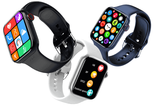 As you see in the picture above, This new i9 smart watch got an Apple Watch Series 7 design that looks sporty, stylish, and fits men and women. Measuring 45.5*38*10.5mm and weighing about 50g. There are two physical buttons on the right side of the case. It is responsible for the function of turning on running back, interface switching. The reverse side of the device received a typical configuration – there are magnetic contacts for charging and a heart rate sensor.