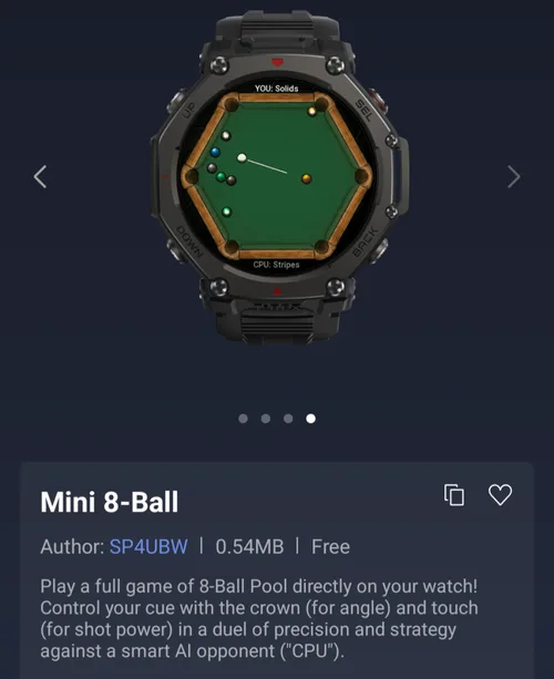 Mini 8-Ball: This surprisingly detailed simulator allows users to play billiards against an AI opponent. The app utilizes the smartwatch’s physical hardware, allowing players to adjust the angle of their cue using the rotating crown, while touch inputs control the power of the shot.