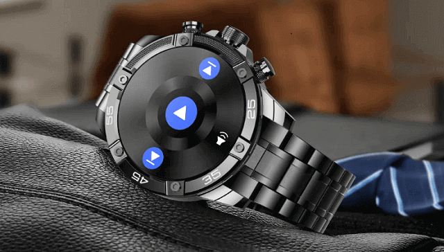 As you see in the picture above, This new GJ01 watch got a circular design that looks stylish, classy, and fits men and women. It measures 47.5*47.2*12.3mm and weighs about 50g. There are three physical buttons on the right side of the case. It is responsible for the function of turning on the running back. The reverse side of the device received a typical configuration – there are magnetic contacts for charging and a heart rate sensor.