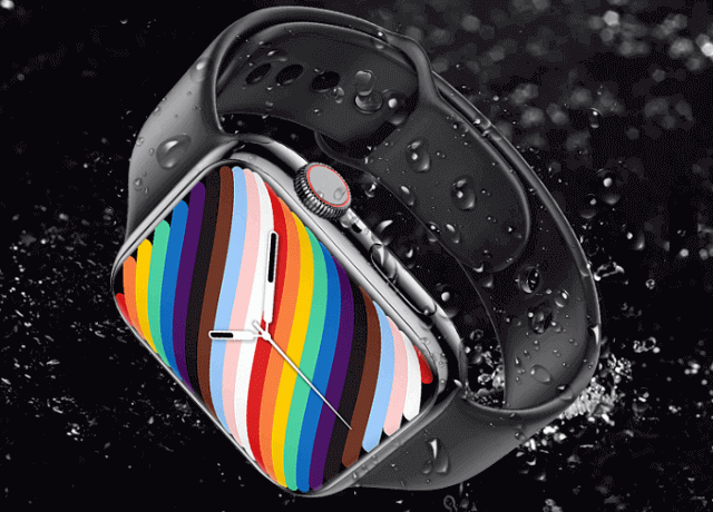 As you see in the photo above, This new H7 Max watch comes in a rectangular shape that looks stylish, fashionable, and very similar to the Apple watch series 7. Measuring 44*37*10mm and weighing about 50g. There are two physical buttons on the right side of the case. It is responsible for the function of turning on the running back. The reverse side of the device received a typical configuration – there are magnetic contacts for charging and a heart rate sensor.