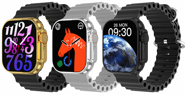 The H8 Ultra Max smartwatch body is made of zinc alloy while the strap is available in silicone and steel. Regarding the display screen! This H8Ultra Max smart watch uses a 2.2-inch Large IPS touch screen curved with 2.5D glass and created with a resolution of 320*386 pixels. This smartwatch is also packed with various watch faces and is available in black, silver, and gold colors.