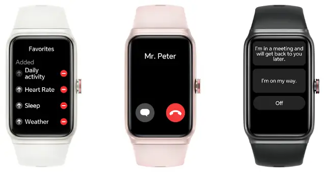 The Honor Choice Moecen Band body is made out of Aluminum alloy with Pc plastic while the strap is available in silicone. Regarding the display screen! This Choice Band has a 1.64-inch Large AMOLED touch screen curved with 2.5D glass created with a resolution of 280*456 pixels. This wearable is also packed with various watch faces and is available in black, silver, and pink colors.