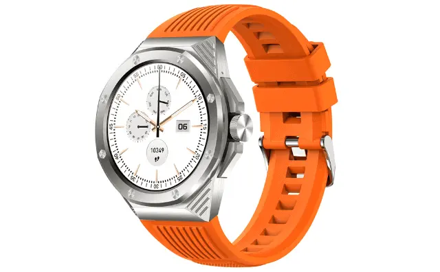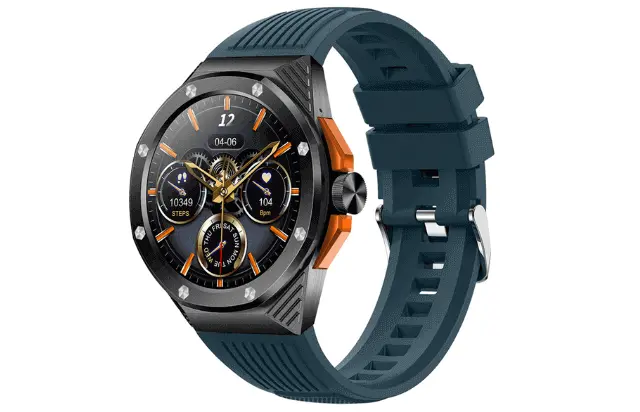 The HT8 smartwatch body is made of zinc alloy while the strap is available in silicone. Regarding the display screen! This HT 8 smart watch has a 1.46-inch large TFT touchscreen curved with 2.5D glass and is created with a resolution of 360 x 360 pixels. This smartwatch is also packed with various watch faces and is available only in black, silver, blue, and orange colors.