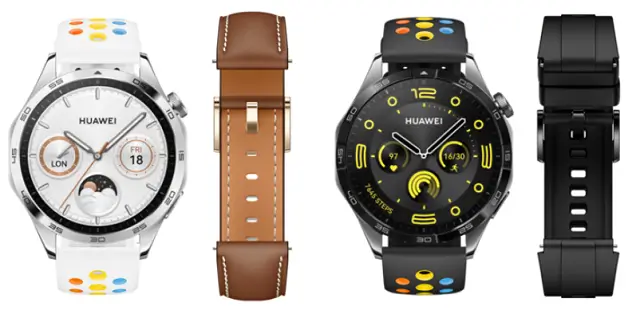 Similarly, Huawei has launched the Watch GT 4 in a new Sport Edition. This version is also available in black and white, featuring a colorful, perforated sport band.