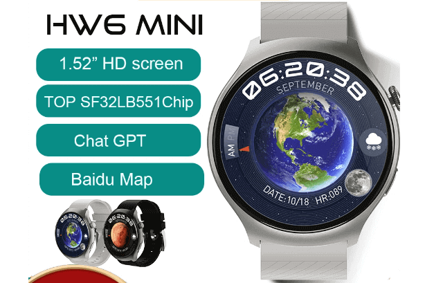 HW6 Mini is one of the latest 2023 smartwatches that can track sports activities and manage health status in real-time. It is a sporty smartwatch that comes in a circular shape with a 1.52-inch large IPS screen and is equipped with several features including a Heart rate monitor, SPO2 Blood oxygen monitor, Multi-Sport modes, ChatGPT, Baidu Maps, and supports Bluetooth calling. So Let’s dive into the full details!