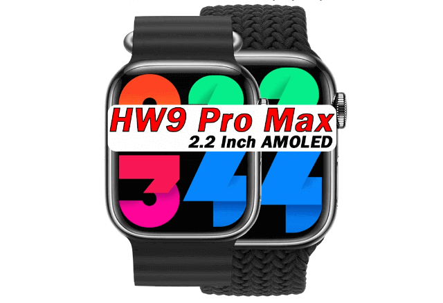 The HW9 Pro Max smartwatch body is made of zinc alloy while the strap is available in silicone and nylon. Regarding the display screen! This HW 9 Pro Max smart watch has a 2.2-inch Large AMOLED touch screen curved with 2.5D glass and created with a resolution of 420*486 pixels. This smartwatch is also packed with various watch faces and is available in black and gray colors.