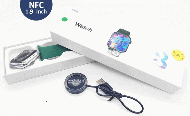 Pros: Stylish design, 1.9-inch Large screen, Bluetooth calling, 4 Kinds of health monitoring, Multi-Sport modes, NFC Access control, Cheap price
