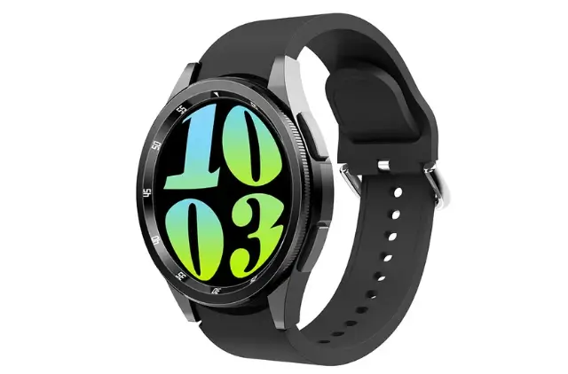 As you see in the picture above, This new JS Watch 6 Max got a circular design that looks stylish, classy, andsimilar to the Samsu,g Galaxy Watch 6. Measuring 49.5*49.5*14.8mm and weighing about 50g. There are two physical buttons on the right side of the panel. It is responsible for the function of turning on the running. The reverse side of the device received a typical configuration – there are magnetic contacts for charging and a heart rate sensor.