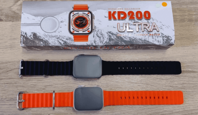 The KD200 Ultra smartwatch body is made of zinc alloy while the strap is available in silicone. Regarding the display screen! This KD 200 Ultra smart watch uses a 1.99-inch Large IPS touch screen covered with 2.5D glass and is created with a resolution of 240*286 pixels. This wearable is also packed with various watch faces and is available in black, silver, and orange colors.