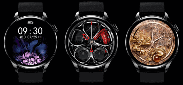 As you in the photo above, This new Keshuyou GT5 watch comes in a circular shape that looks stylish, sporty, and fits men and women. Measuring 46.4*46.4*12.8mm and weighing about 50g. There are two physical buttons on the right side of the case. It is responsible for the function of turning on the running. The reverse side of the device received a typical configuration – there are magnetic contacts for charging and a heart rate sensor.