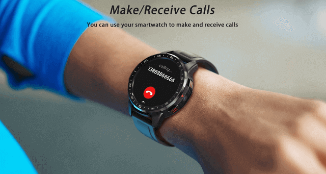 The KOM2 smartWatch body is made of PC+ABS plastic while the strap is available in silicone, leather, and steel. Regarding the display screen! KOM2 Android watch has a 1.6-inch full-round IPS screen created with 400*400 pixels resolution. This wearable is also packed with a variety of watch faces and is available only in black color.