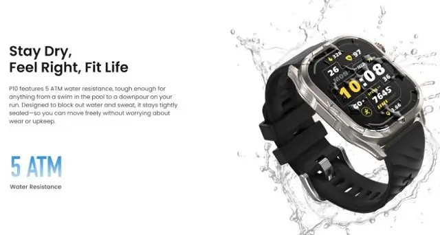 kospet-magic-p10-smartwatch-specs-price-full-detailsIn Addition to Magic R10, Kospet has also launched another smartwatch called Kospet Magic P10. The wearable is a sporty watch that comes square with a 1.96-inch AMOLED screen and is equipped with several features, including a Heart rate monitor, SPO2 Blood oxygen monitor, GPS, 180+ sports modes, 5ATM Waterproofing, and support for Bluetooth calling.