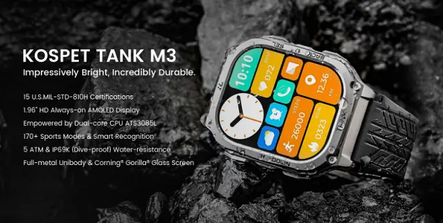 The Kospet Tank M3 Ultra GPS smartwatch is available only on Aliexpress. Check Price