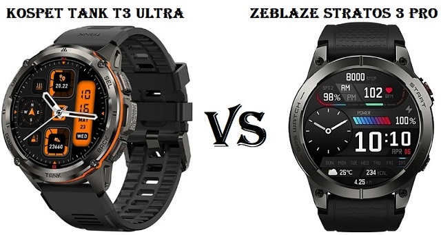Kospet Tank T3 Ultra VS Zeblaze Stratos 3 Pro Specs Comparison: