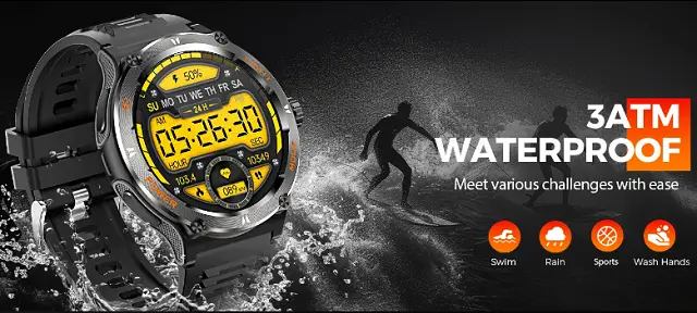 KT76 is a 3ATM waterproof smartwatch, you can wear it when washing your hands, on rainy days, or even while swimming. The wearable has a heart rate sensor, which collects data on our heart rate over 24 hours. This model also helps you to control your sleep, thanks to its complete sleep monitor. It also has a pedometer and allows us to control and estimate the calories burned throughout the day.