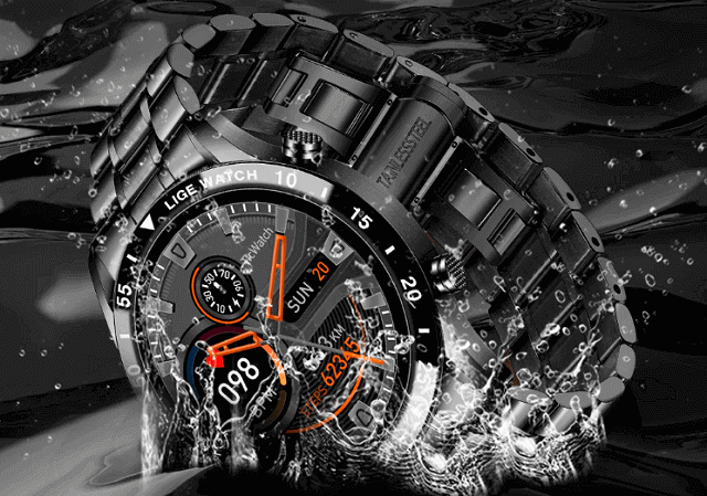 The LIGE BW0220 smartwatch body is made of zinc alloy while the strap is available in silicone and steel. Regarding the display screen! This LIGE BW 0220 smart watch has a 1.3-inch IPS touch screen curved with 2.5D glass and is created with a resolution of 240 x 240 pixels. This gadget is also packed with various watch faces and is available in black, orange, and silver colors.