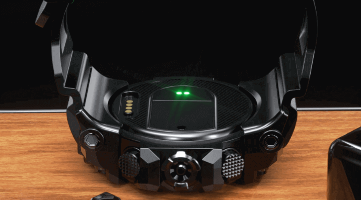 As you see in the photo above! This new APPLLP 6 smartwatch got a circular shape that looks rugged, stylish, and suitable for men and women. Measuring 62*58*18mm and weighing about 85g. There are two physical buttons on the right side and one button on the left side. It is responsible for the function of the turn on/off. On the top of the panel, you will find a 90° degree rotating camera. The reverse side of the device received a typical configuration – there are magnetic contacts for charging and a heart rate sensor.