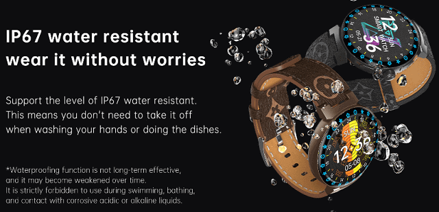 The LV02 smartwatch body is made out of zinc alloy with PC plastic while the strap is available in leather. Regarding the display screen! This LV 02 smart watch uses a 1.32-inch Large IPS touch screen curved with 3D glass and is created with a resolution of 360 x 360 pixels. This Fitness tracker is also packed with a variety of watch faces and is available in black, silver, and brown colors.