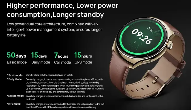 The Mibro Watch Lite3 Pro smartwatch body is made out of Zinc alloy while the strap is available in leather. Regarding the display screen! This Mibro Lite3 Pro smart watch uses a 1.32-inch large AMOLED touchscreen curved with 2.5D glassy and is created with a resolution of 466×466 pixels. This device is also packed with a variety of watch faces and is available in black, gold, and silver colors.