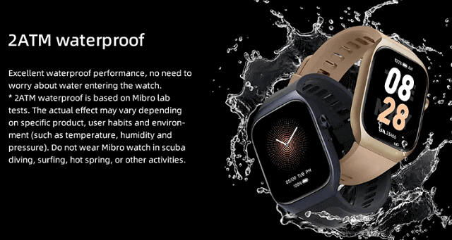 Mibro T2 is a 2ATM waterproof smartwatch, which means you can wear it when you wash your hands, on rainy days, or even while swimming. The wearable has a heart rate sensor, which collects data on our heart rate over 24 hours. This device also helps you to control your sleep, thanks to its complete sleep monitor. It also has a pedometer and allows us to control and estimate the calories burned throughout the day.