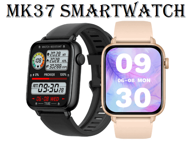 The MK37 smartwatch body is made out of zinc alloy with PC plastic while the strap is available in silicone and steel. Regarding the display screen! This MK 37 smart watch uses a 1.85-inch Large IPS touch screen curved with 2.5D glass and is created with a resolution of 240 x 280 pixels. This Fitness tracker is also packed with a variety of watch faces and is available in black, pink, and gold colors.