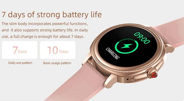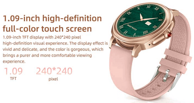 Pros: Elegant design, Bluetooth call, Multi kinds of health monitoring, Menstrual Cycle Reminder, 123 sports modes, Multi Watch Faces