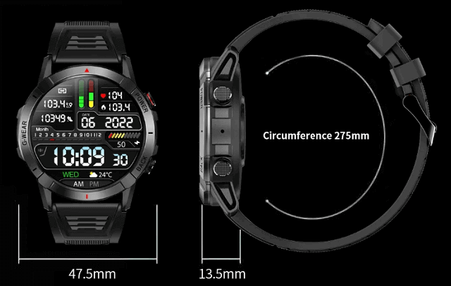 As you see in the photo above, This new NX10 watch comes in a circular shape that looks stylish, fashionable, and fits men and women. Measuring 47.5*47.5*13.5mm and weighing about 50g. There are two physical buttons on the right side of the panel. It is responsible for the function of turning on the running. The reverse side of the device received a typical configuration – there are magnetic contacts for charging and a heart rate sensor.