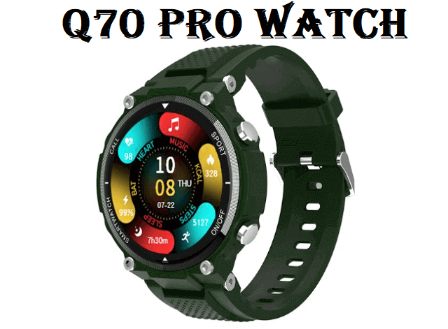 The Q70 Pro smartwatch body is made of zinc alloy with PC plastic while the strap is available in silicone. Regarding the display screen! This Q70Pro smart watch uses a 1.28-inch IPS touch screen created with a resolution of 240 x 240 pixels. This smartwatch is also packed with various watch faces and is available in black and green colors.