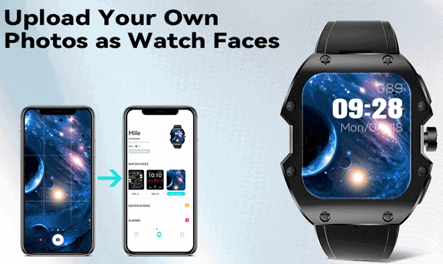The Rogbid Mille smartwatch body is made of Matal+ABS+PC plastic while the strap is available in silicone. Regarding the display screen! This Mille smartwatch uses a 1.91-inch Large IPS touchscreen curved with 2.5D glass and created with a resolution of 320 x 385 pixels. This smartwatch is also packed with more than 100 watch faces and is available only in black color.