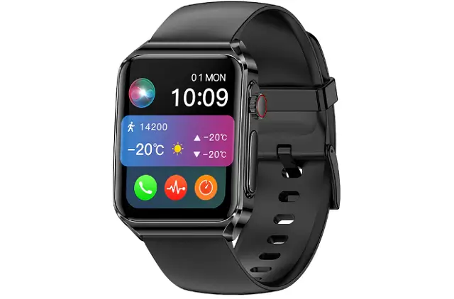 In addition to the features mentioned above! The Rogbid Rowatch7 smartwatch has a speaker and microphone that allow you to make calls directly via the watch. Additional Features are a Blood oxygen monitor, Blood pressure monitor, Blood glucose test, ECG, +100 sport modes, Breath training, Sedentary reminders, NFC access control, App notifications, and so on. This wearable has a 300mAh battery capacity that can last 5-7 days with normal usage and 15 days with basic watch mode.