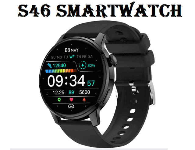 The S46 smartwatch body is made of zinc alloy while the strap is available in silicone. Regarding the display screen! This S 46 smart watch has a 1.28-inch IPS touchscreen curved with 2.5D glass and created with a resolution of 240 x 240 pixels. This smartwatch is also packed with a variety of watch faces and is available in black, blue, and pink colors.