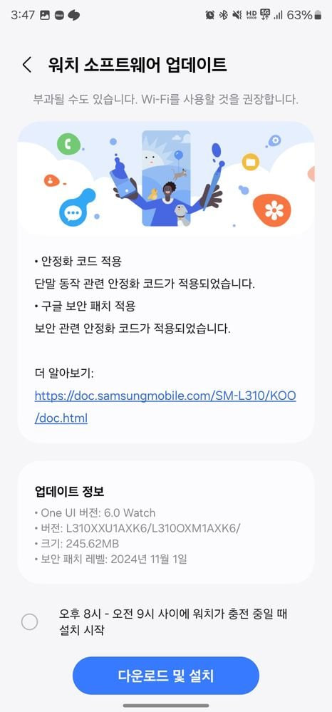 The November 2024 security update for the Galaxy Watch 7 is currently being rolled out to users in Korea. Samsung is expected to expand the availability of this update to more regions in the coming days. The update arrives with build version L310XXU1AXK6 and weighs in at 245.62MB.