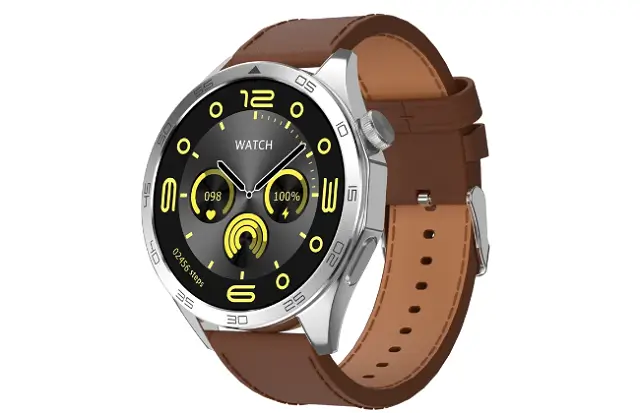 The SK48 smartwatch body is made of zinc alloy while the strap is available in silicone. Regarding the display screen! This SK 48 smart watch has a 1.62-inch large AMOLED touchscreen curved with 2.5D glass and is created with a resolution of 466 x 466 pixels. This gadget is also packed with a variety of watch faces and is available in black, green, brown, and silver colors.