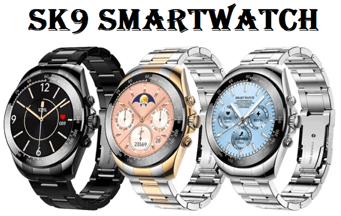 The SK9 smartwatch body is made out of zinc alloy while the strap is available in steel. Regarding the display screen! This SK9 smartwatch has a 1.09 inch TFT touch screen created with a resolution of 240 x 240 pixels. The wearable is also packed with a variety of watch faces and is available in black, silver, and gold colors.