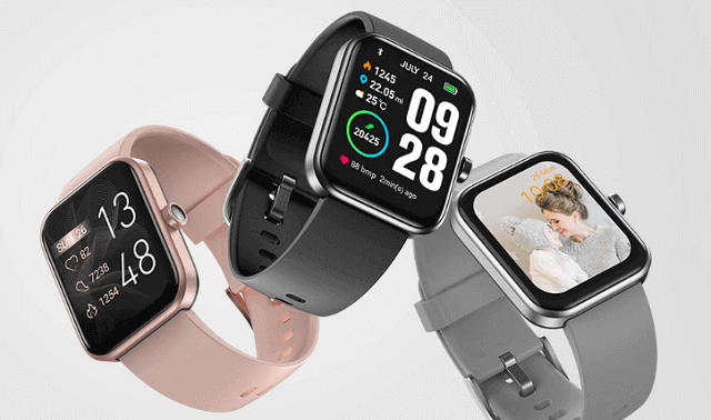 The Tozo S2 smartwatch body is made of zinc alloy while the strap is of silicone. Regarding the display screen! This S2 smart watch has a 1.69-inch large TFT touchscreen curved with 2.5D glass and is created with a resolution of 240 x 280 pixels. This wearable is also packed with various watch faces and is available in black, grey, and gold colors.