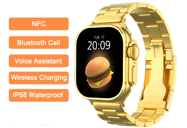 The V9 Ultra Max smartwatch body is made of zinc alloy while the strap is available in silicone and steel. Regarding the display screen! This V9 UltraMax smart watch has a 2.02-inch Large IPS touchscreen curved with 2.5D glass and created with a resolution of 385*420. pixels. This smartwatch is also packed with a variety of watch faces and is available in gray, black, silver, and black colors.