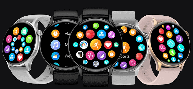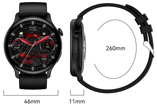 The Vwar K80 smart watch body is made out of zinc alloy while the strap is available in silicone. Regarding the display screen! This K80 smart watch has a 1.43-inch AMOLED touch screen support always-on display and is created with a resolution of 466 x 466 pixels. This fitness tracker is also packed with a variety of watch faces and is available in Black, Silver, Pink, and Gold colors.