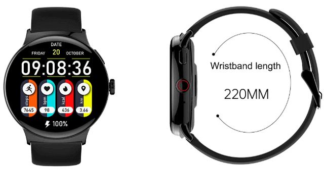 The Vwar Pixel 2 smartwatch body is made out of zinc alloy while the strap is available in silicone. Regarding the display screen! This Pixel 2 smart watch has a 1.43-inch large AMOLED touchscreen that supports an always-on display and is created with a resolution of 466 x 466 pixels. This gadget is also packed with a variety of watch faces and is available in black, pink, and silver colors.